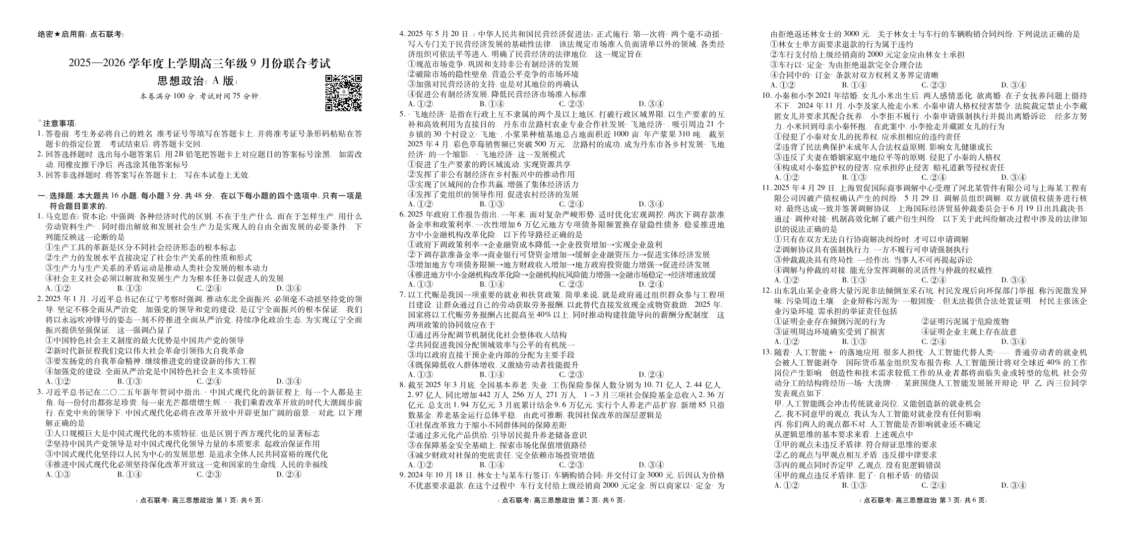点石联考2025-2026学年度上学期高三年级9月份联合考试 政治(A版).pdf