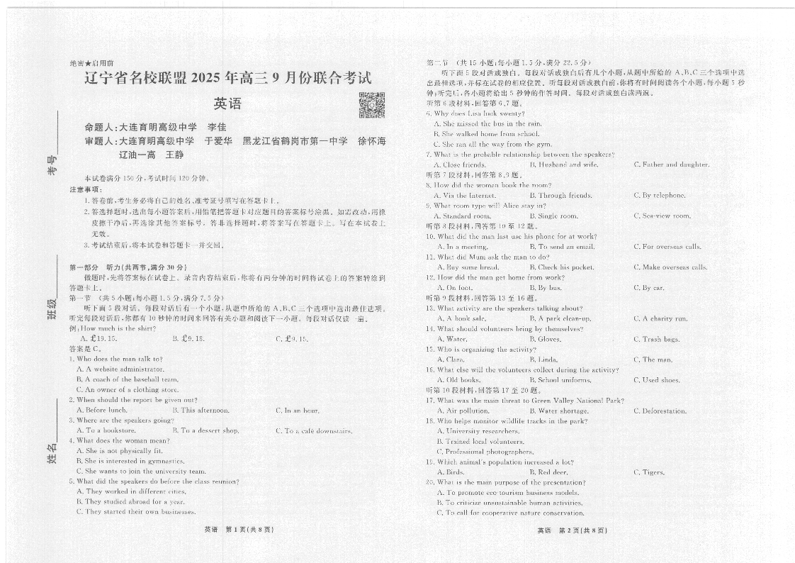 辽宁省名校联盟2025年高三9月份联合考试 英语.pdf