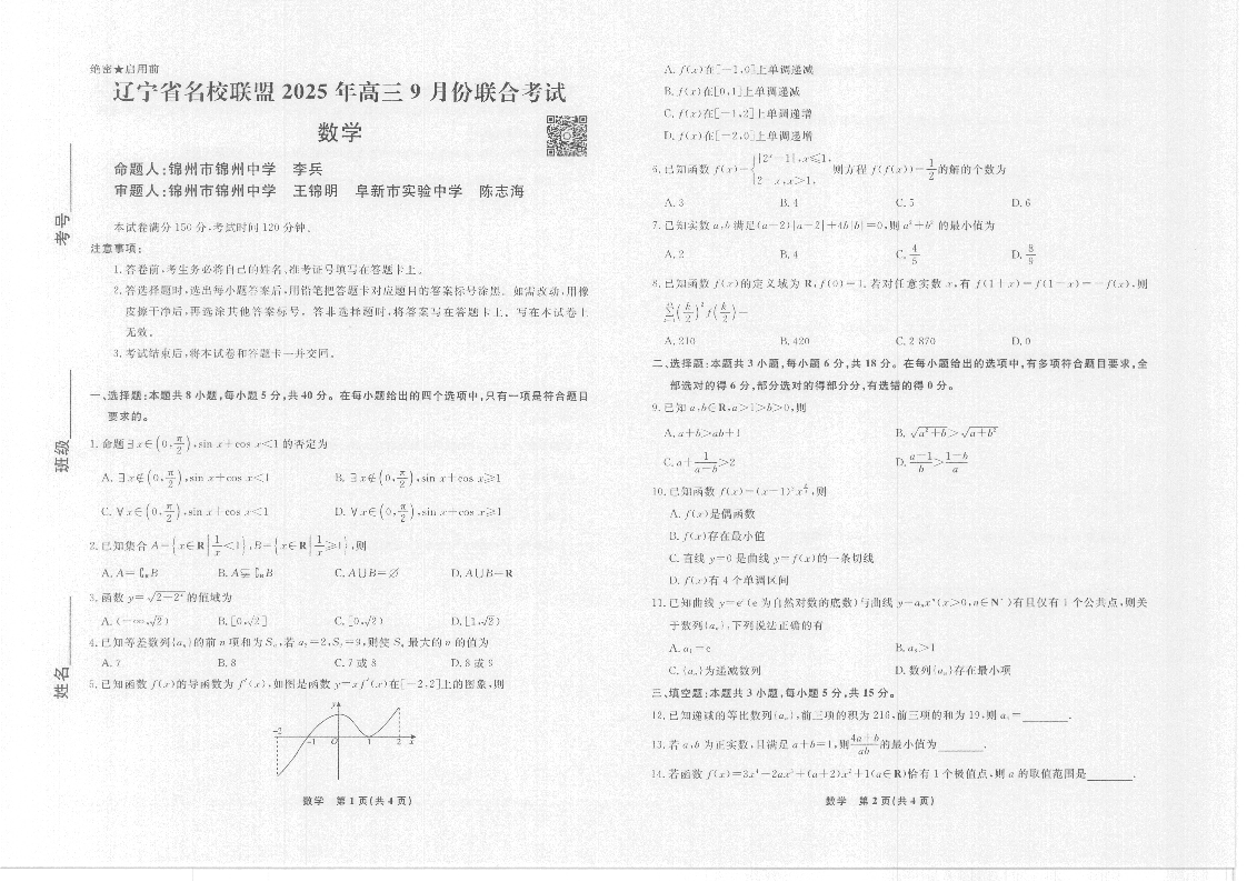 辽宁省名校联盟2025年高三9月份联合考试 数学.pdf