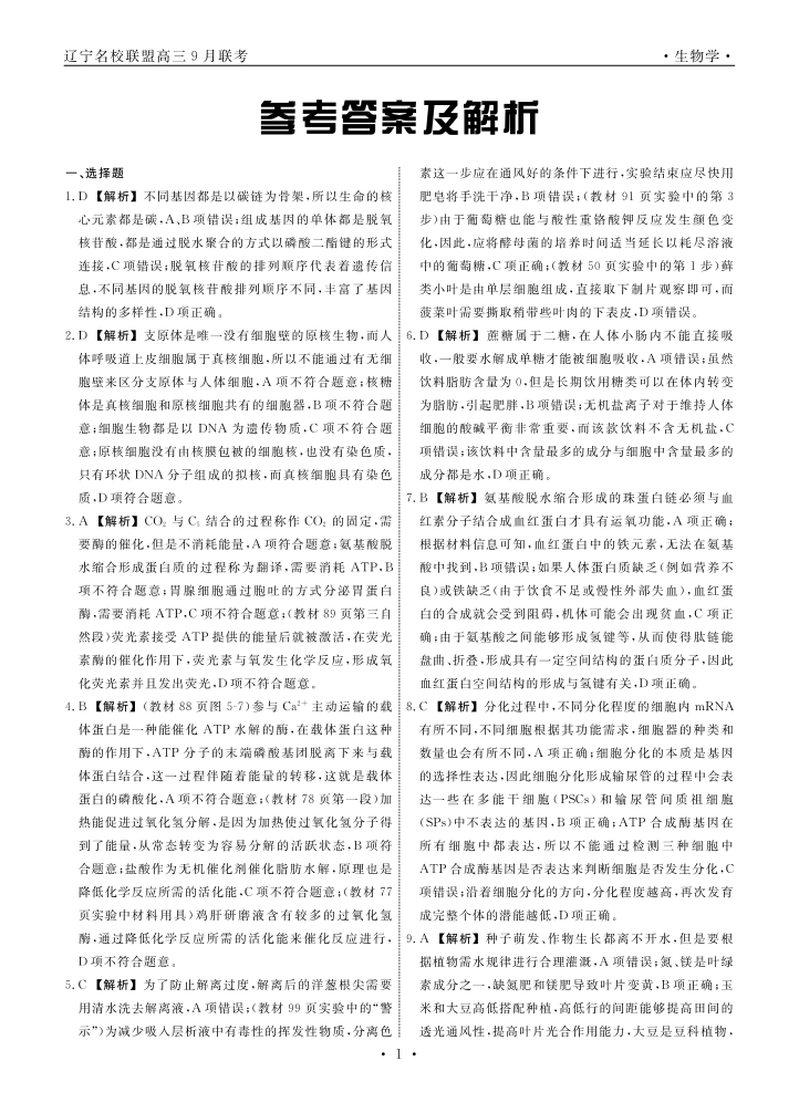 辽宁省名校联盟2025年高三9月份联合考试 生物答案.pdf