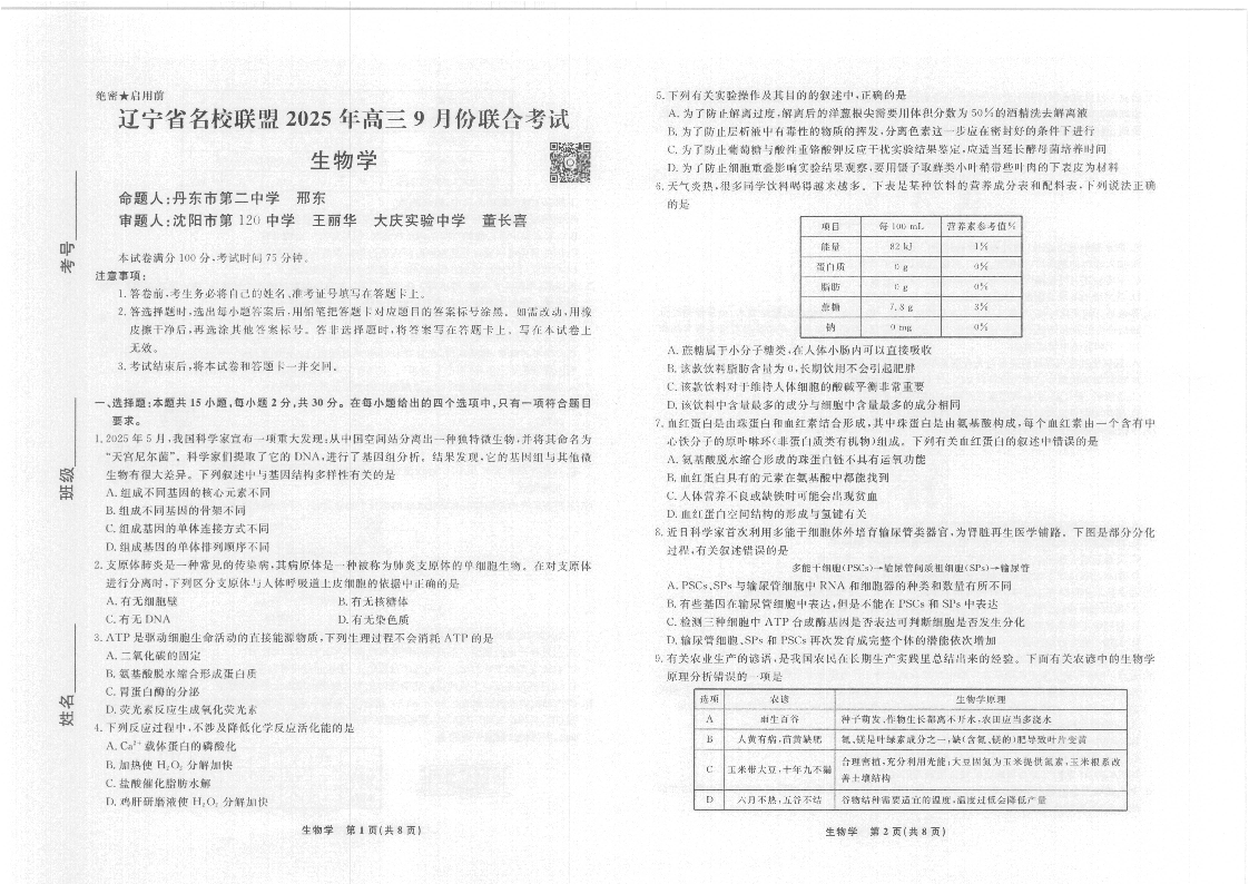 辽宁省名校联盟2025年高三9月份联合考试 生物.pdf