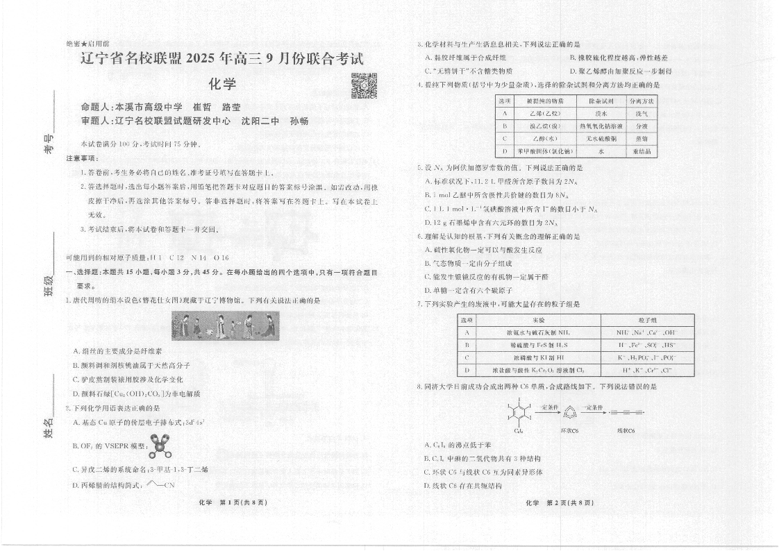 辽宁省名校联盟2025年高三9月份联合考试 化学.pdf