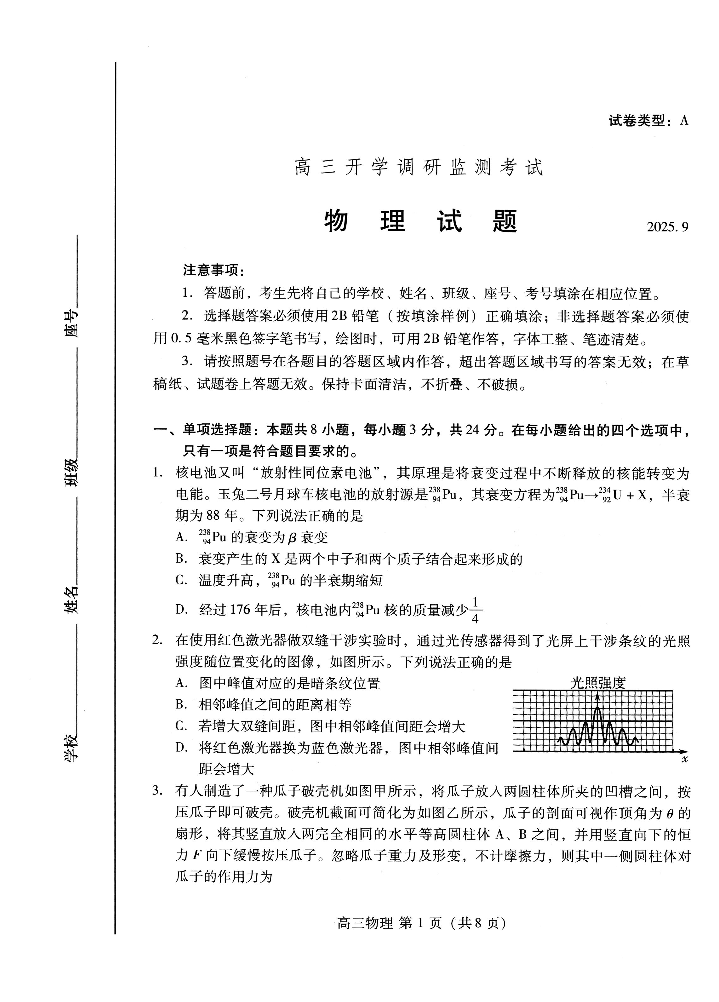 潍坊市2026届高三开学调研监测考试 物理.pdf