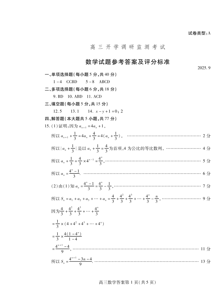 潍坊市2026届高三开学调研监测考试 数学答案.pdf