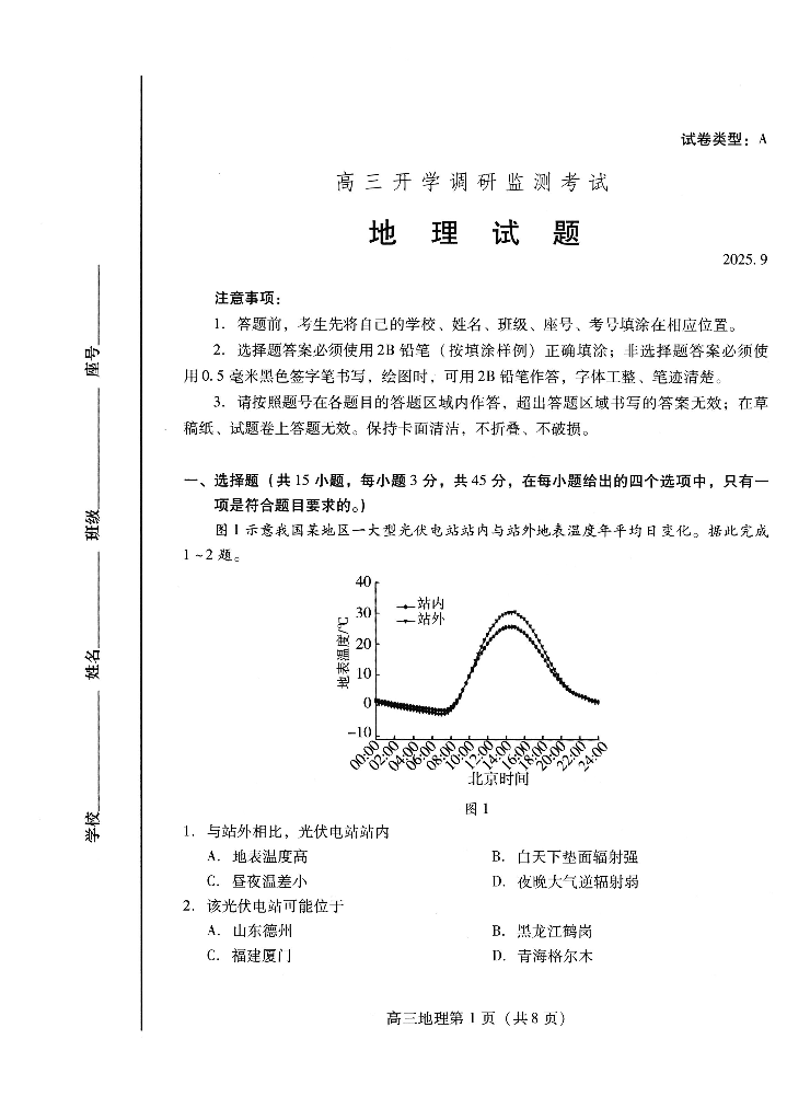 潍坊市2026届高三开学调研监测考试 地理.pdf