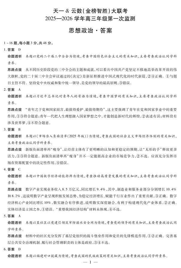 四川省2025-2026学年高三年级第一次监测 政治答案.pdf