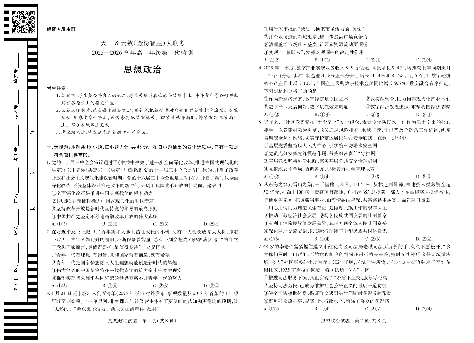 四川省2025-2026学年高三年级第一次监测 政治.pdf
