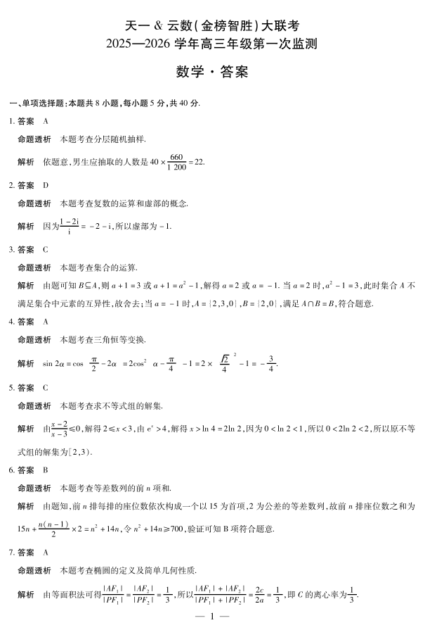 四川省2025-2026学年高三年级第一次监测 数学答案.pdf