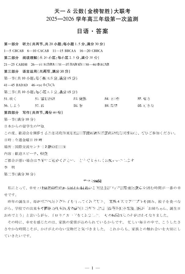 四川省2025-2026学年高三年级第一次监测 日语答案.pdf