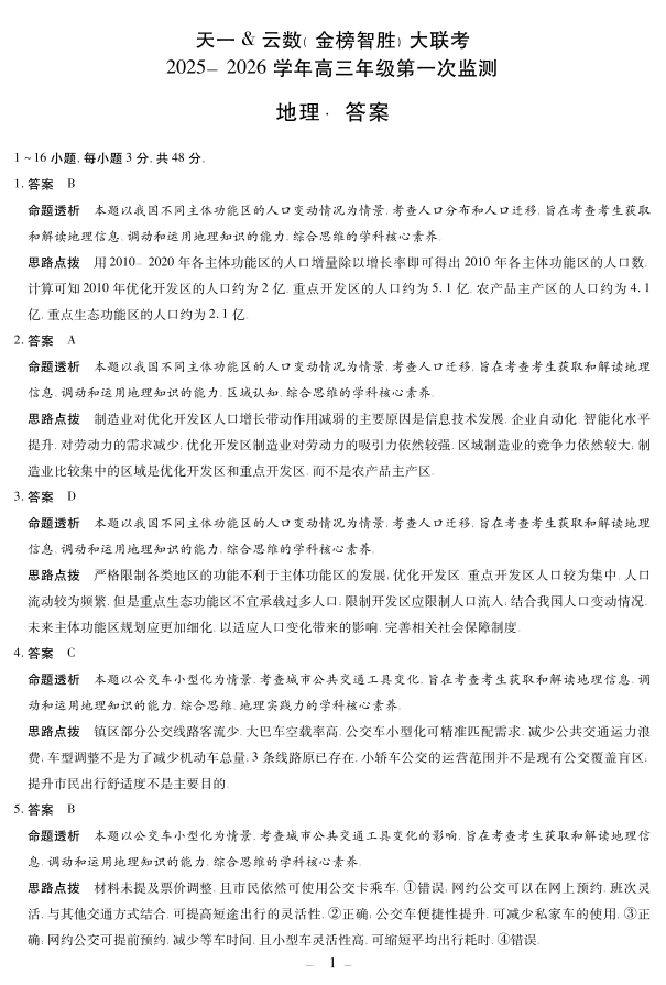 四川省2025-2026学年高三年级第一次监测 地理答案.pdf