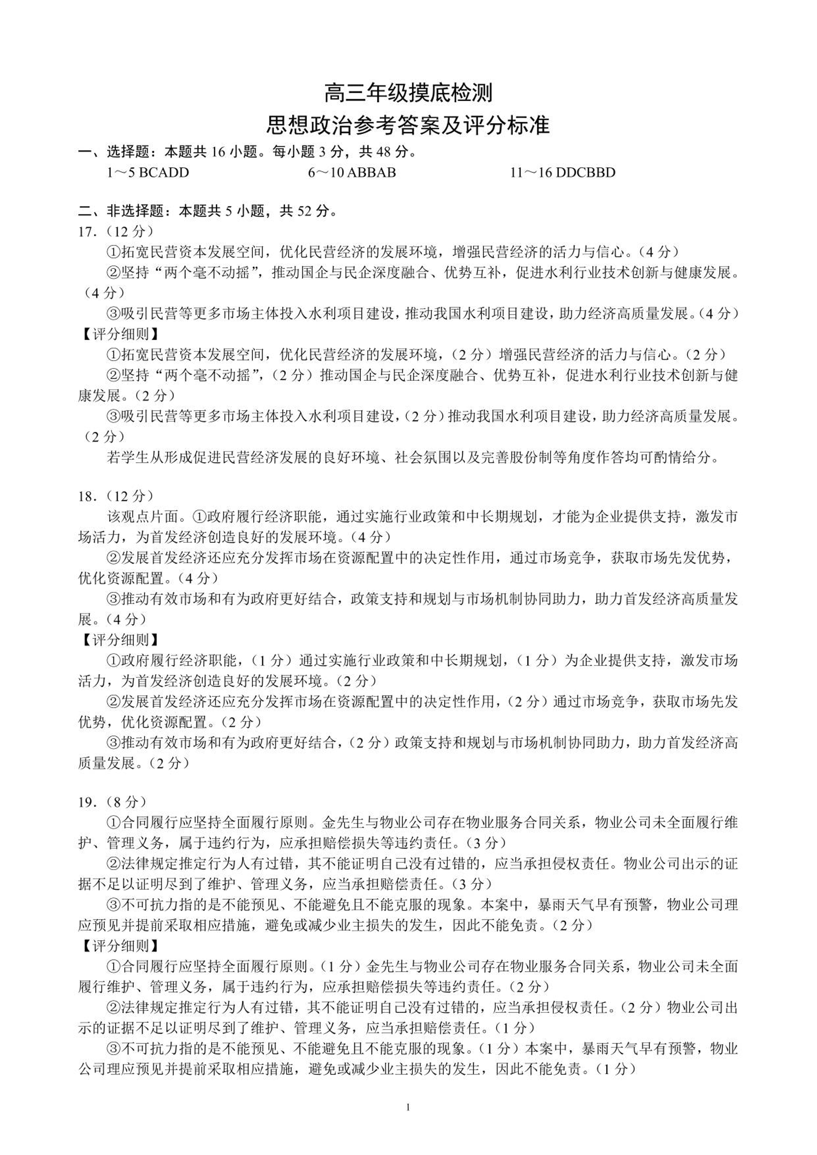 成都市蓉城名校联盟2025-2026学年高三上学期开学联考 政治答案.pdf