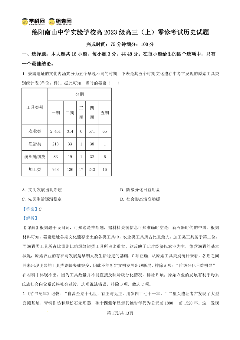 绵阳南山中学实验学校2025-2026学年高三上学期9月月考 历史答案.docx