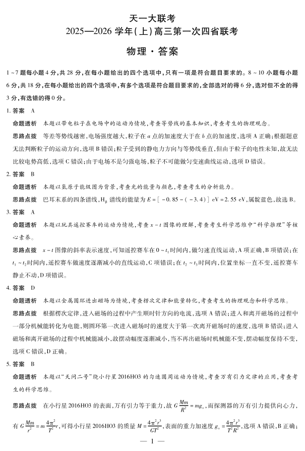物理-高三上高三第一次四省联考详细答案.pdf