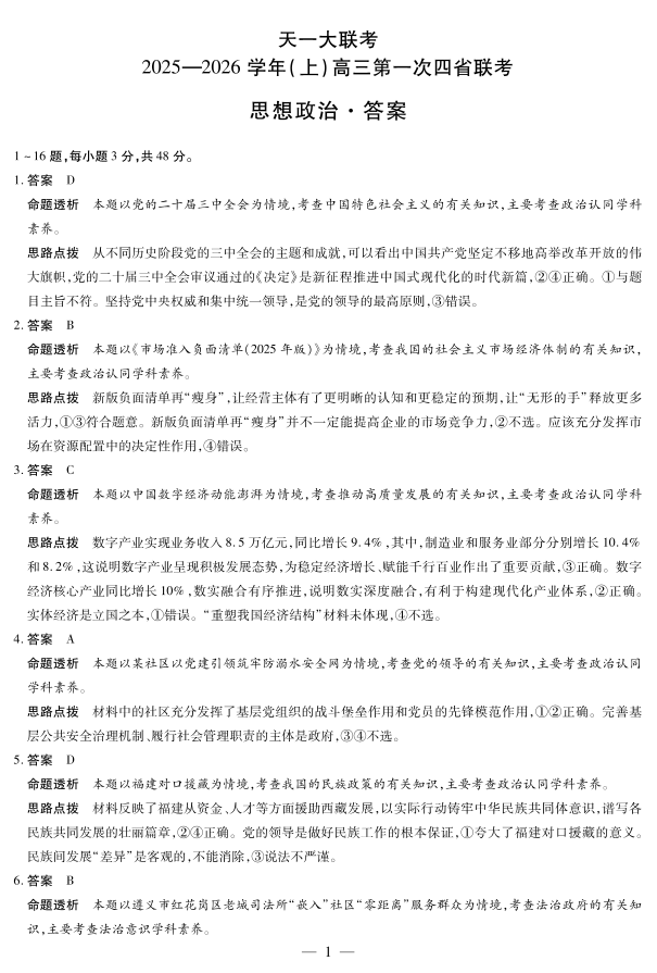 思想政治-高三上高三第一次四省联考详细答案.pdf