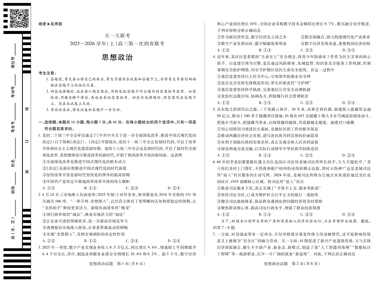 思想政治-高三上高三第一次四省联考.pdf