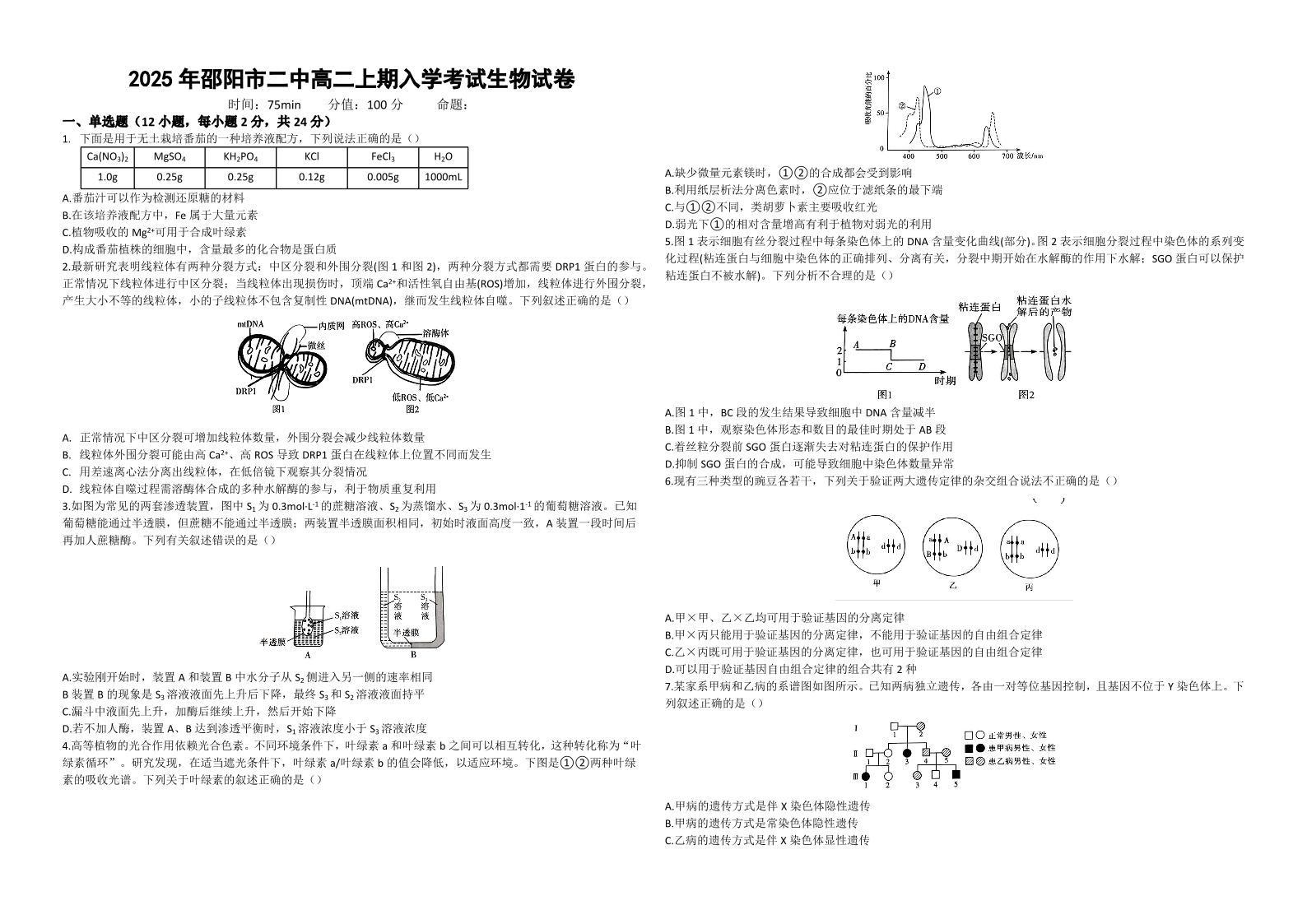 邵阳市第二中学2025-2026学年高二上学期入学考试 生物.pdf