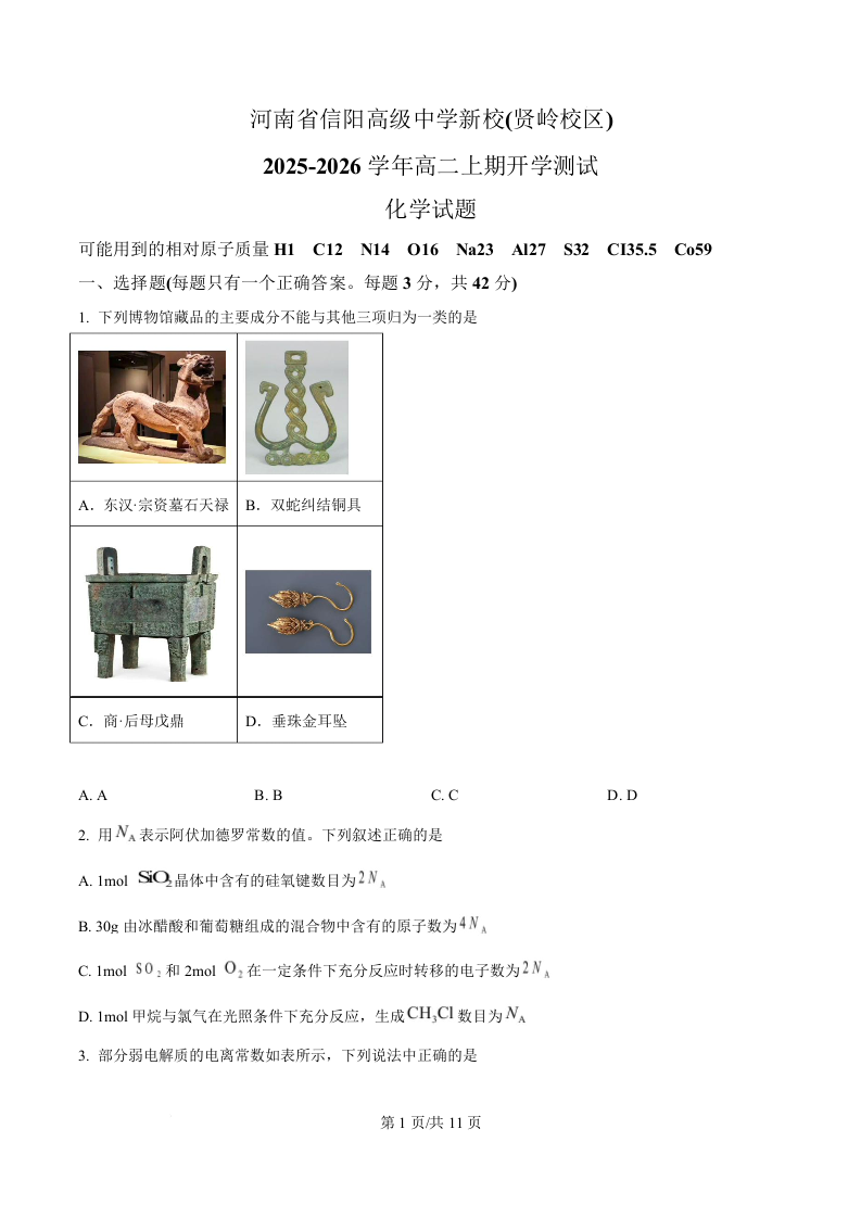 河南省信阳高级中学2025-2026学年高二上学期开学考试 化学.docx