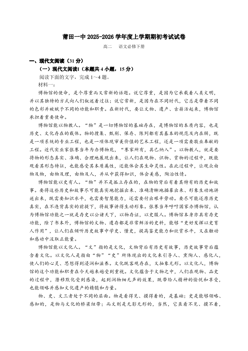 福建省莆田第一中学2024-2025学年高二上学期开学考试 语文试题(含答案).pdf