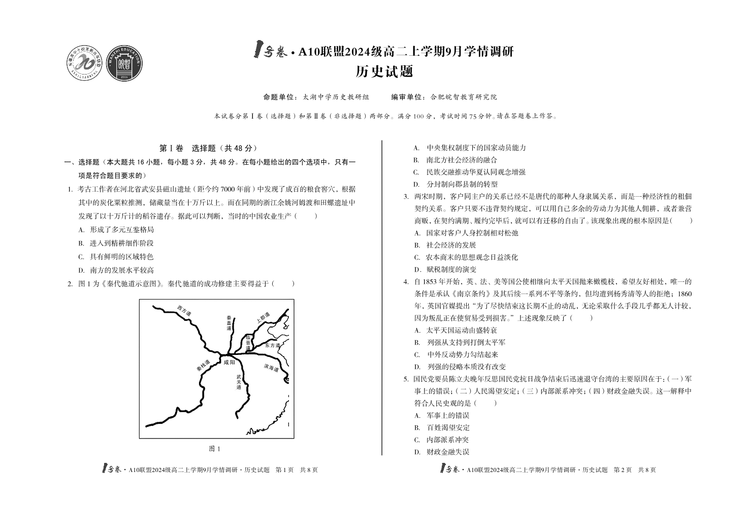 1号卷·A10联盟2024级高二上学期9月学情调研 历史.pdf