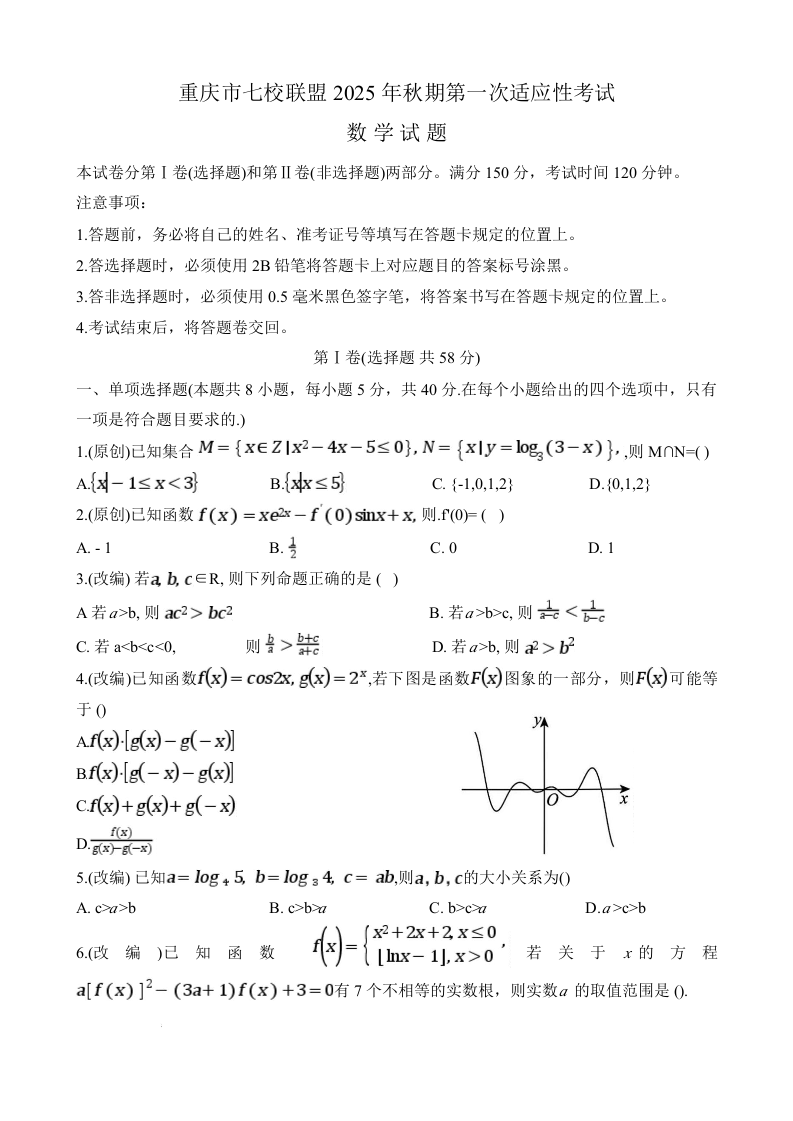 重庆市七校联盟2026届高三上学期第一次适应性考试 数学.docx