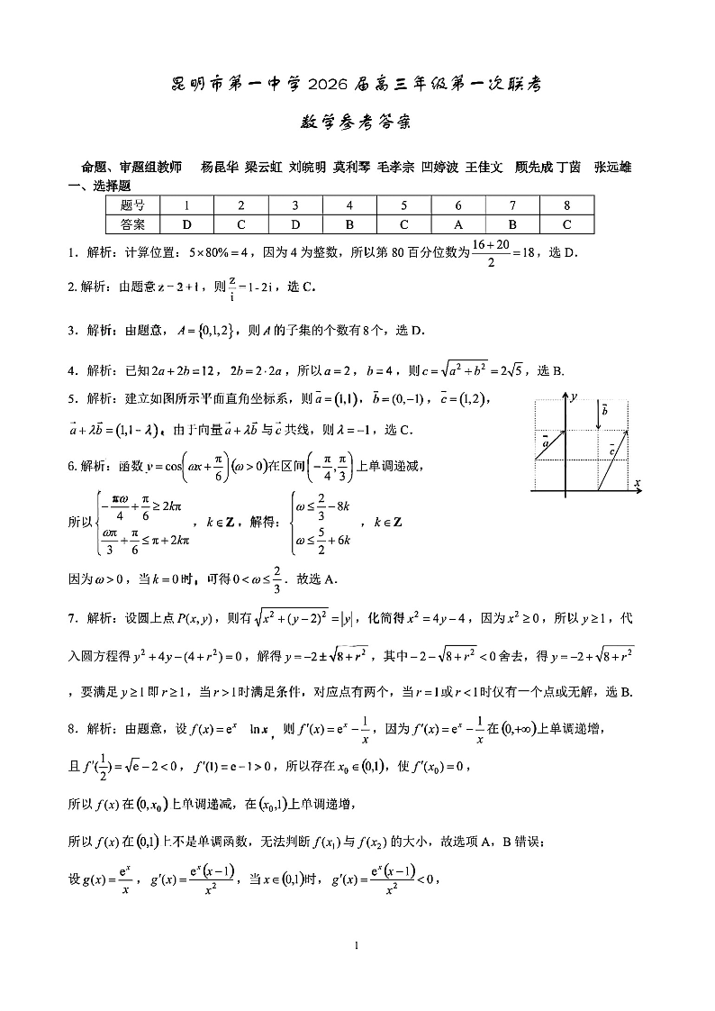 昆明市第一中学2026届高三年级第一次联考 数学答案.pdf
