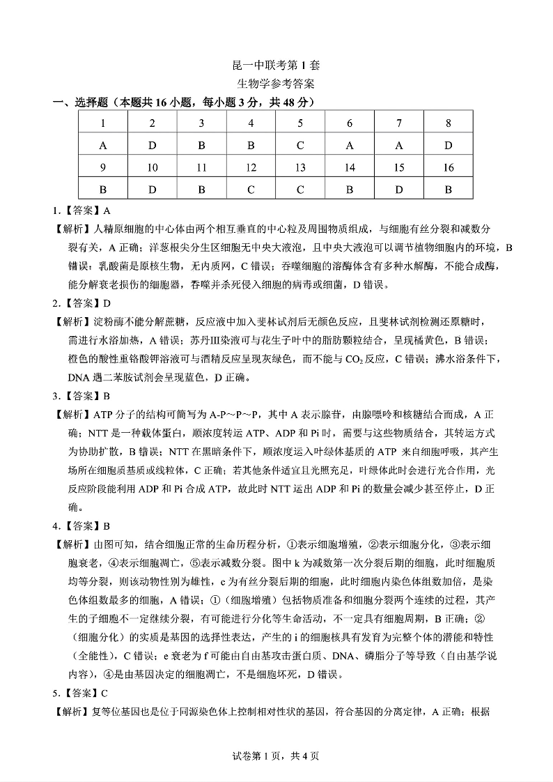 昆明市第一中学2026届高三年级第一次联考 生物答案.pdf