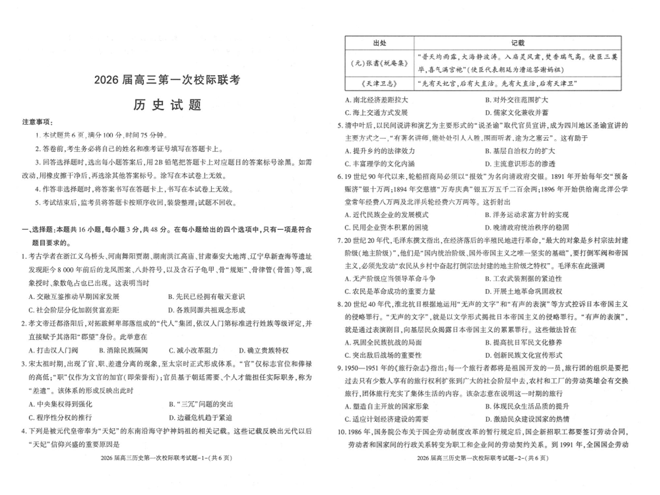 陕西省汉中市2026届高三上学期第一次校际联考 历史试卷(含答案).pdf