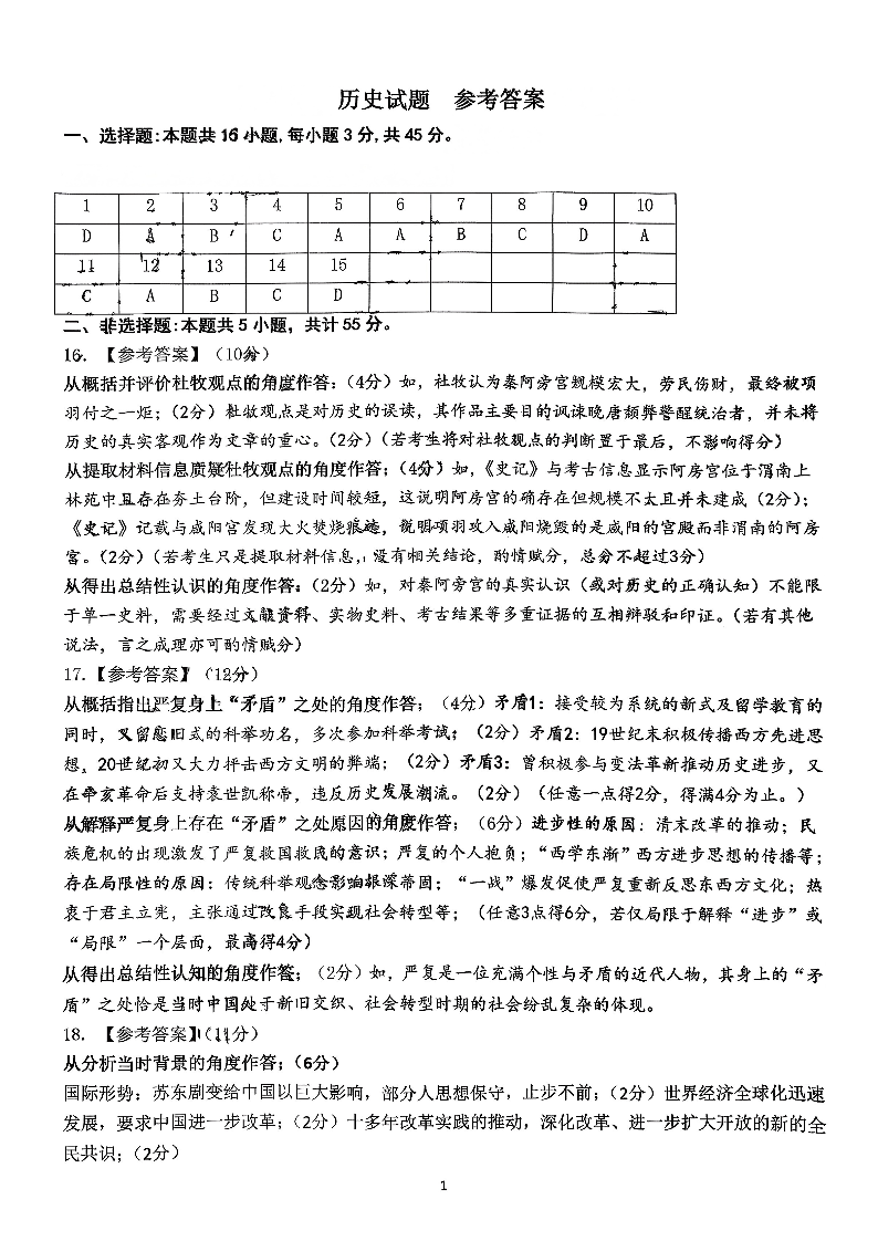山东名校考试联盟2025-2026学年高三年级开学摸底考试 历史答案.pdf
