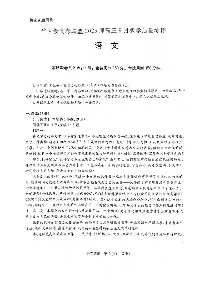 华大新高考联盟2026届高三9月教学质量测评 语文.pdf