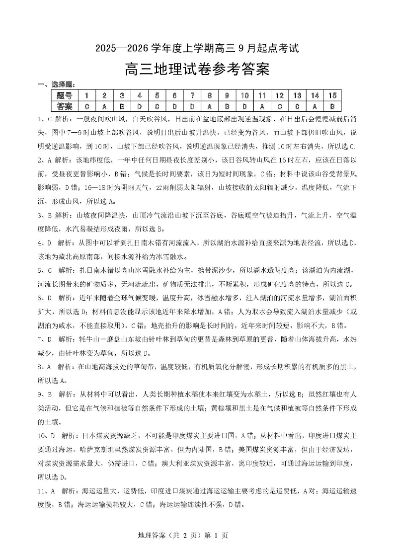 湖北省楚天协作体2026届高三上学期9月起点考试 地理答案.pdf