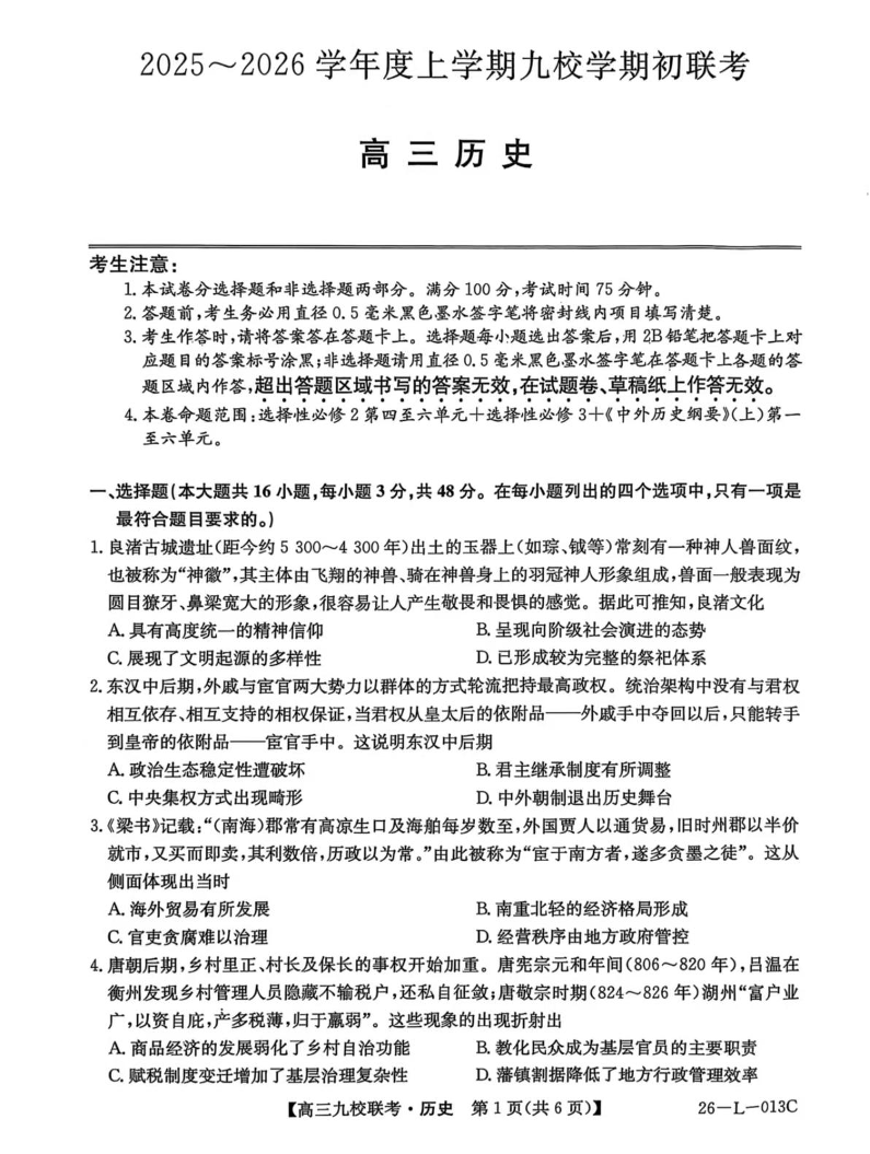 龙西北高中名校联盟2025-2026学年度高三上学期开学考 历史.pdf