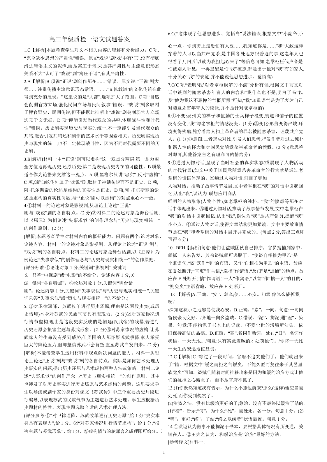 河北省衡水市高中联考2026届高三上学期质检(一)语文答案.docx