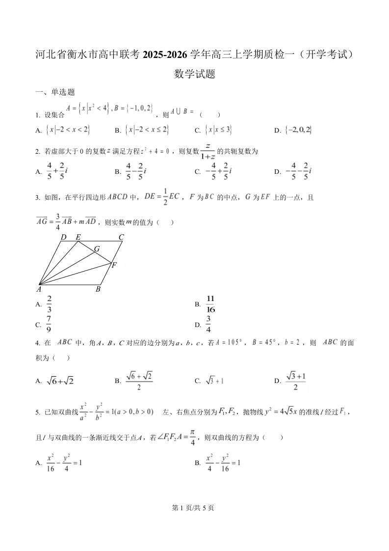 河北省衡水市高中联考2026届高三上学期质检(一)数学.docx