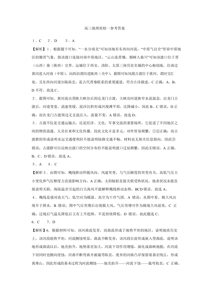 河北省衡水市高中联考2026届高三上学期质检(一)地理答案.docx