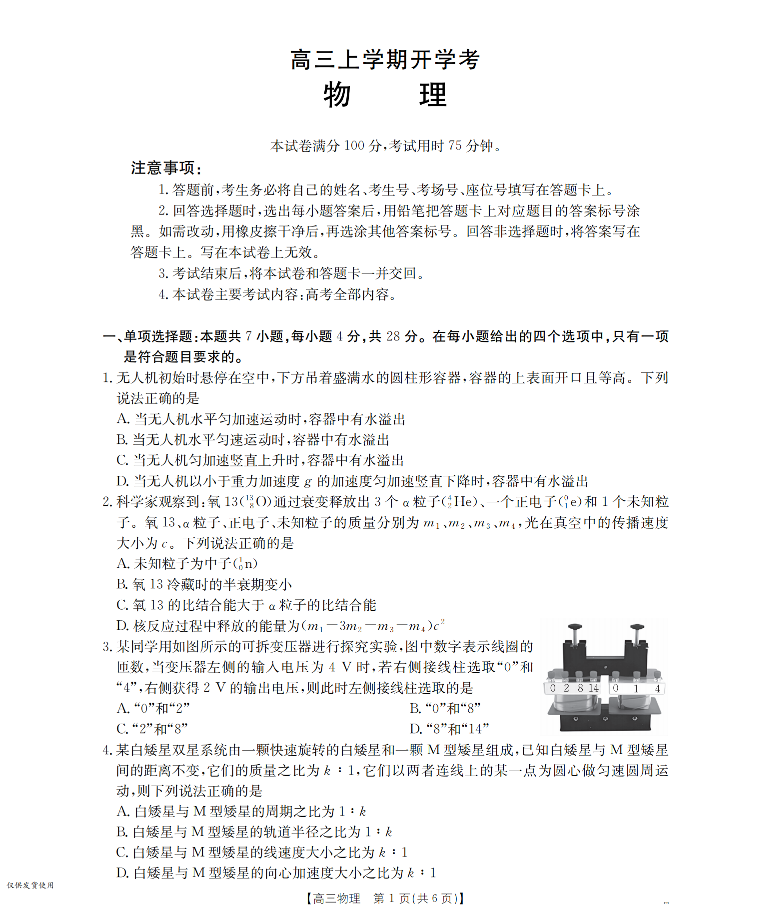 河北省金太阳2026届高三上学期9月开学联考 物理.pdf