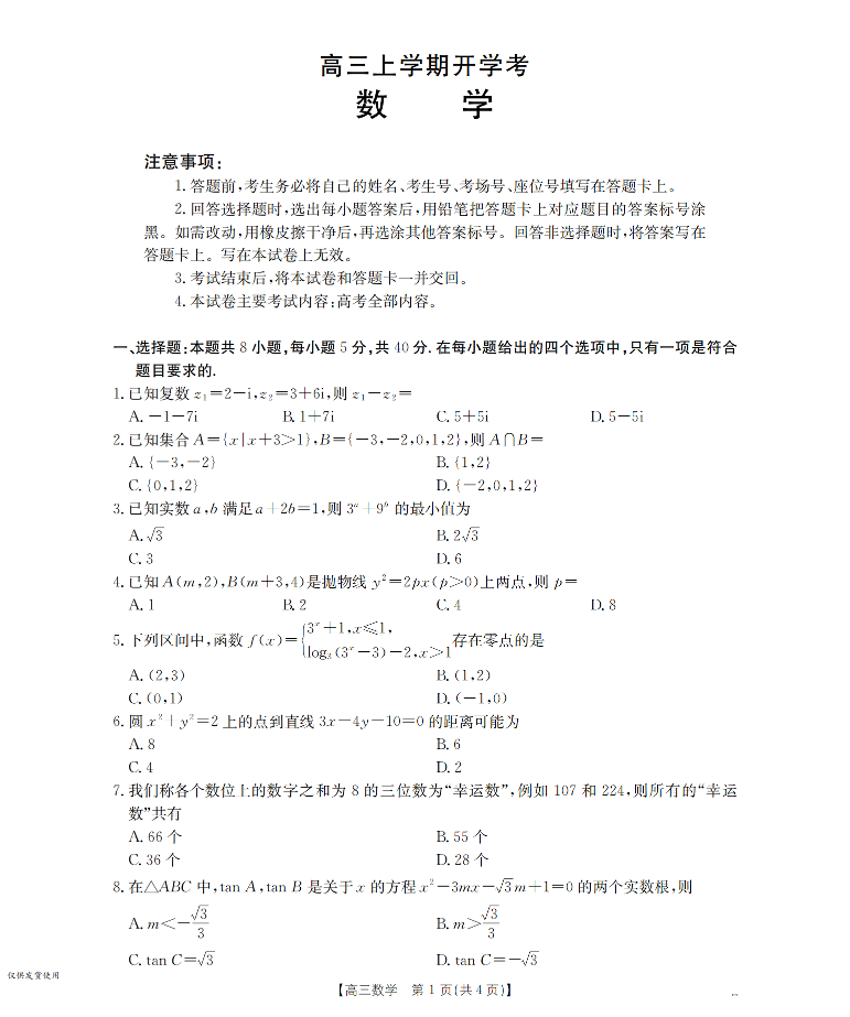 河北省金太阳2026届高三上学期9月开学联考 数学.pdf