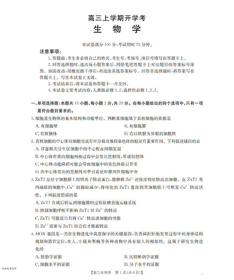 河北省金太阳2026届高三上学期9月开学联考 生物.pdf