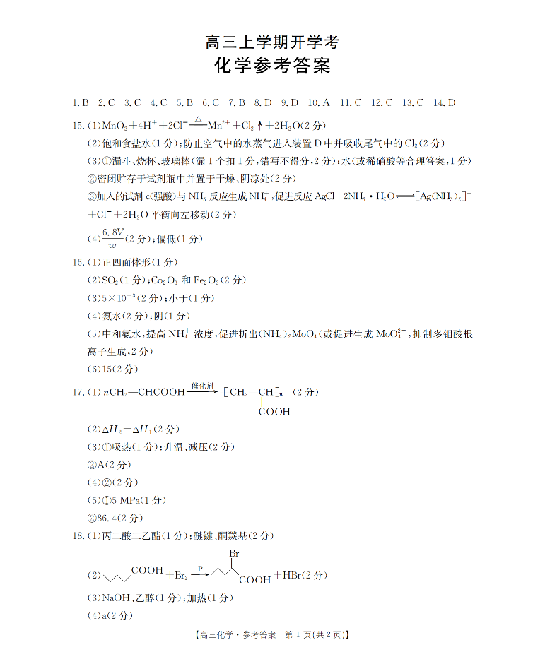 河北省金太阳2026届高三上学期9月开学联考 化学答案.pdf