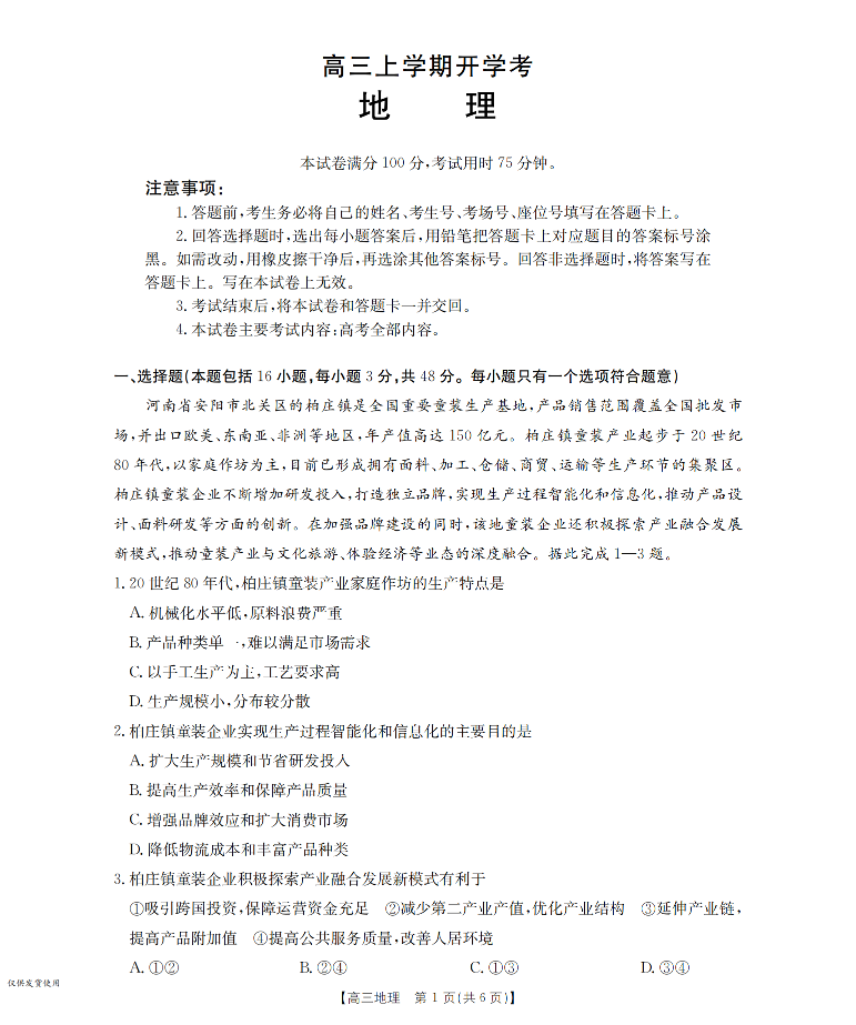 河北省金太阳2026届高三上学期9月开学联考 地理.pdf