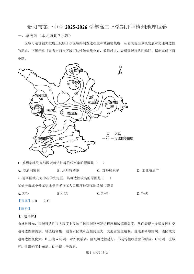 贵州省贵阳市第一中学2026届高三上学期9月开学考试 地理答案.docx