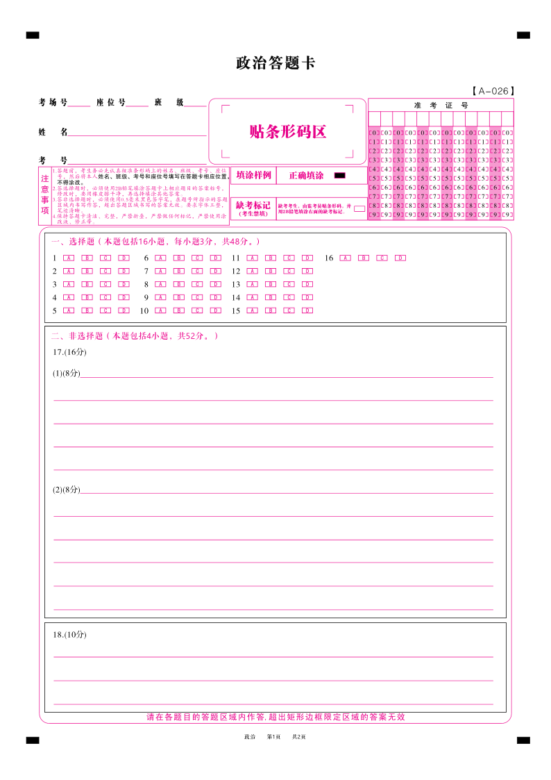 政治答题卡·2025年9月高三开学考.pdf
