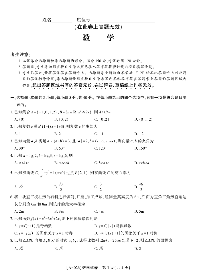 数学·2025年9月高三开学联考.pdf