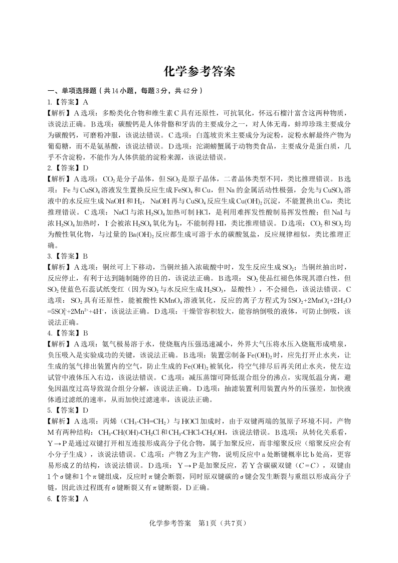 化学答案·2025年9月高三开学联考.pdf
