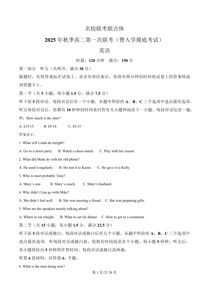 湖南省长沙市名校联考联合体2025-2026学年高二上学期第一次联考 英语答案.pdf