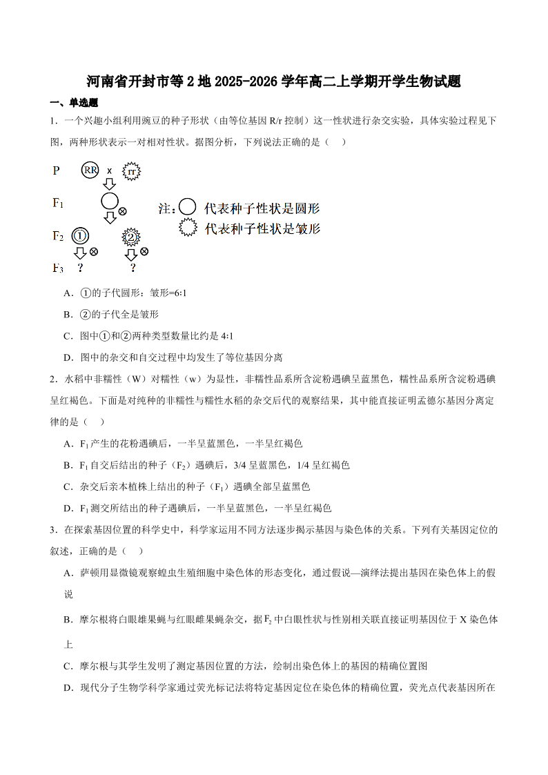 河南省开封市等2地2025-2026学年高二上学期开学考试 生物试卷(含答案).pdf