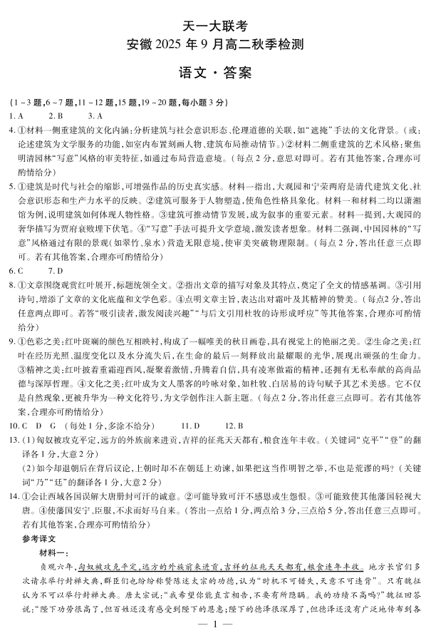 语文安徽高二9月秋季检测简答.pdf