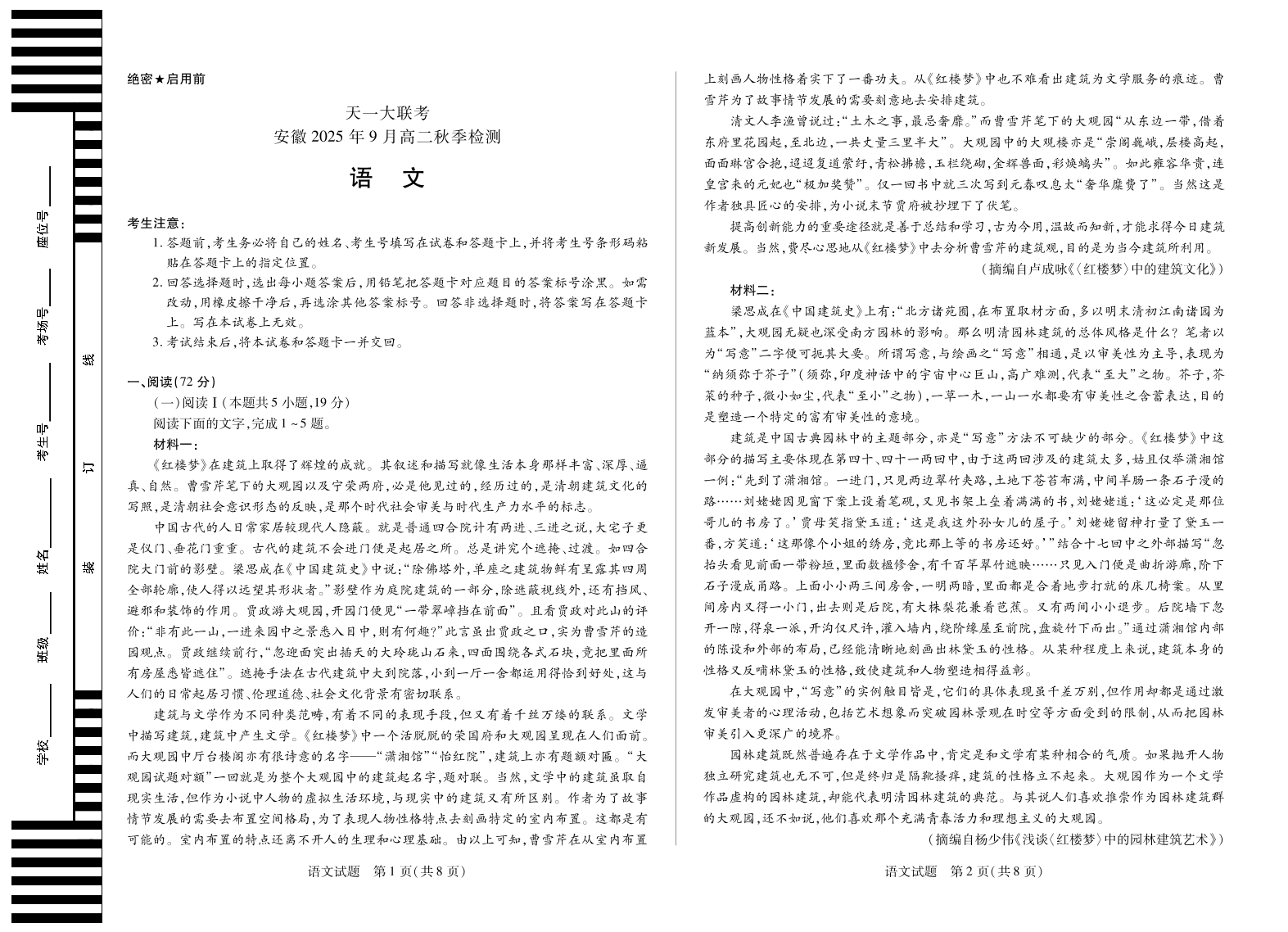 语文安徽高二9月秋季检测.pdf