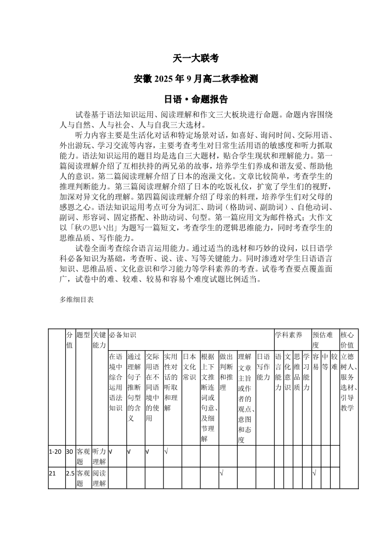 日语安徽高二9月秋季检测命题报告.pdf