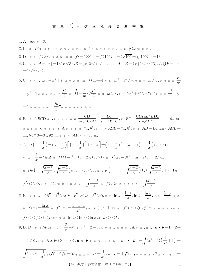 福建省部分学校2026届高三9月开学联考 数学答案.pdf