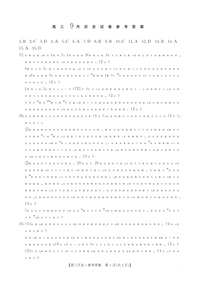福建省部分学校2026届高三9月开学联考 历史答案.pdf